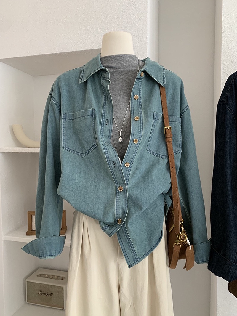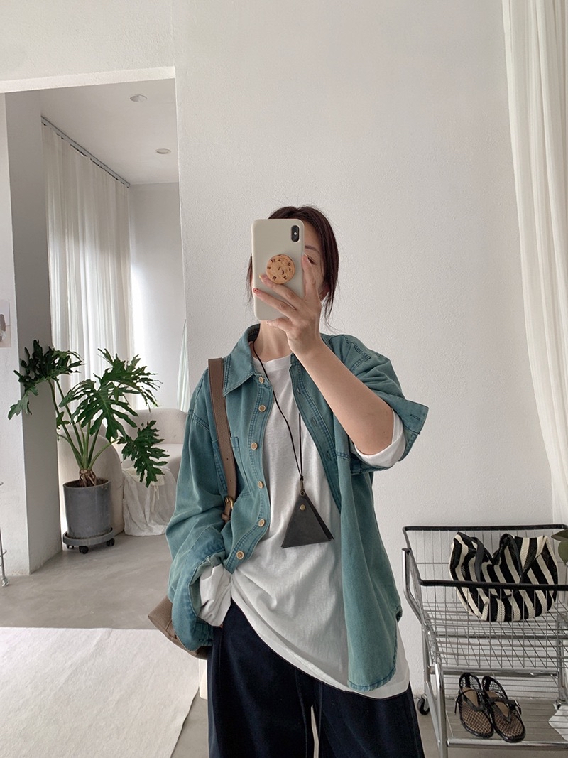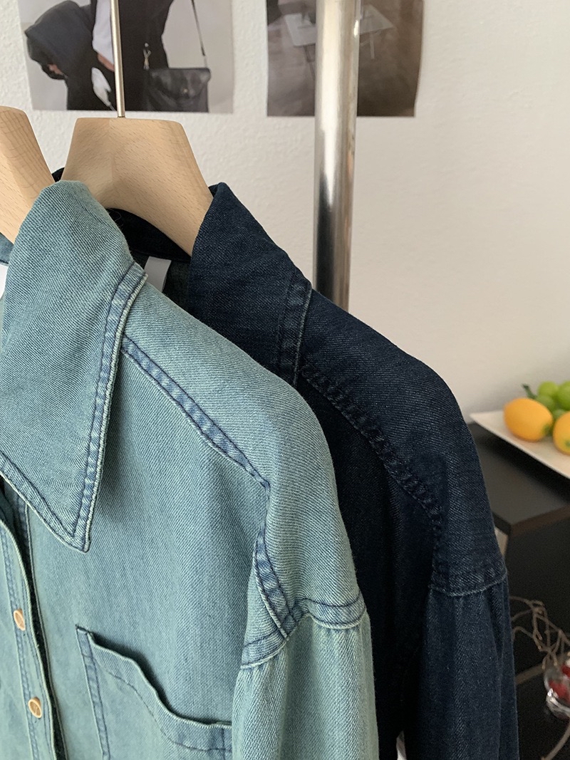 复古软面料,穿起来柔软舒适,慵懒随性~搭牛仔裤或半身裙都很有复古味道! 📏 尺寸参考|Size Info 肩宽 49cm|胸围 110cm|衣长 65cm (手工测量,误差 ±1-2cm 为正常范围) Soft vintage-style denim jacket, comfy and casual. Perfect with jeans or a skirt for a retro vibe.