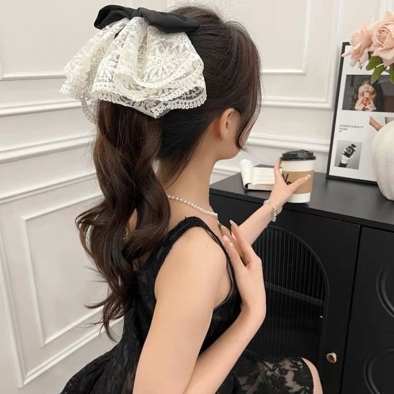 拼色设计让层次更突出,搭配重工蕾丝展现优雅与高级感。 适合拍照、出游、特别场合造型。 Two-tone lace bow with elegant texture — refined, chic and photogenic.