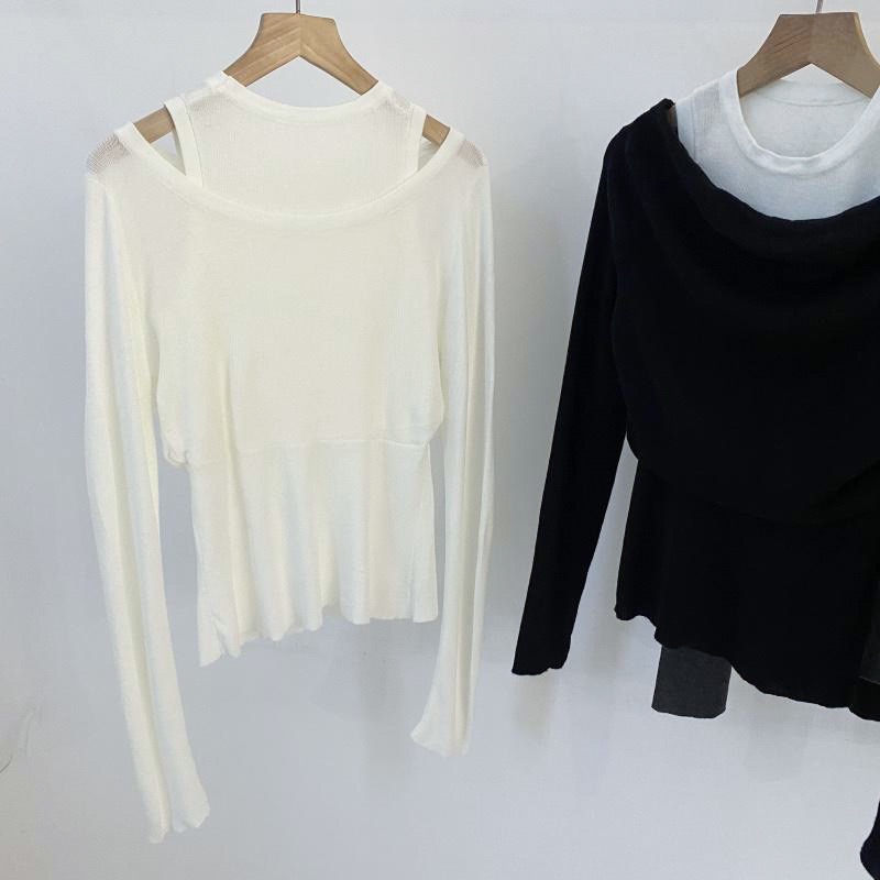 假两件撞色设计,轻松打造层次感穿搭。 一字肩剪裁修饰颈线与锁骨,展现轻熟优雅氛围。 针织面料柔软舒适,弹性佳不勒身,休闲中带点小性感。 产品特色: ✨ 假两件撞色设计,层次感满分 ✨ 弹力针织面料,贴身舒适 ✨ 一字肩版型,修饰颈肩线条 📏 尺寸参考|Size Info 胸围 72-82cm|衣长 54cm (手工测量,误差 ±1-2cm 为正常范围) A contrast-color knit top designed with a layered look for effortless chic. The off-shoulder cut beautifully frames your neckline, while soft stretchy knit ensures all-day comfort.