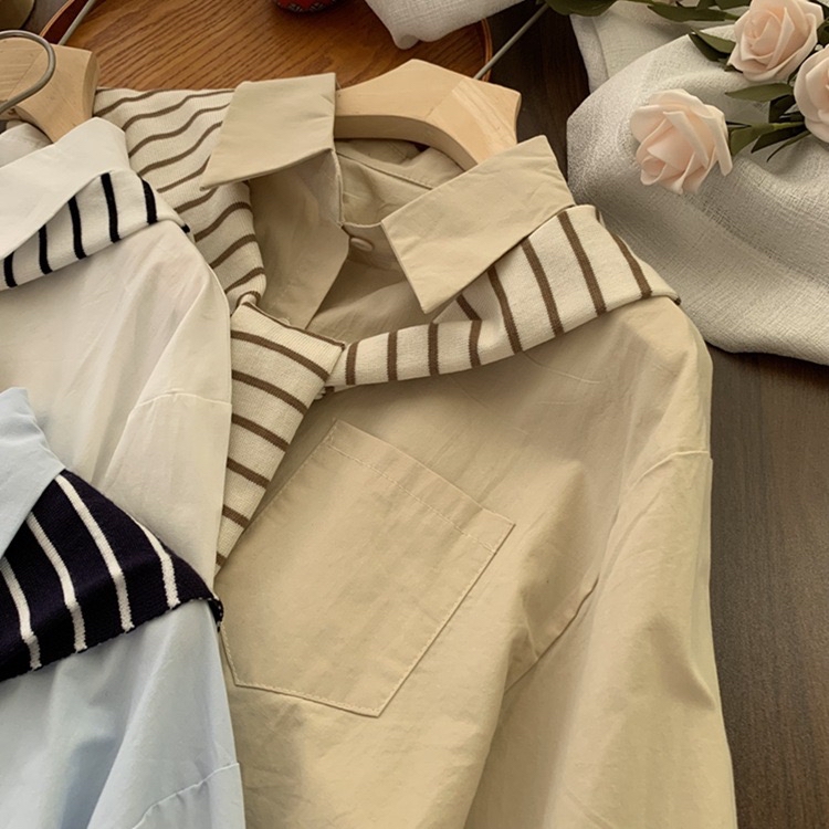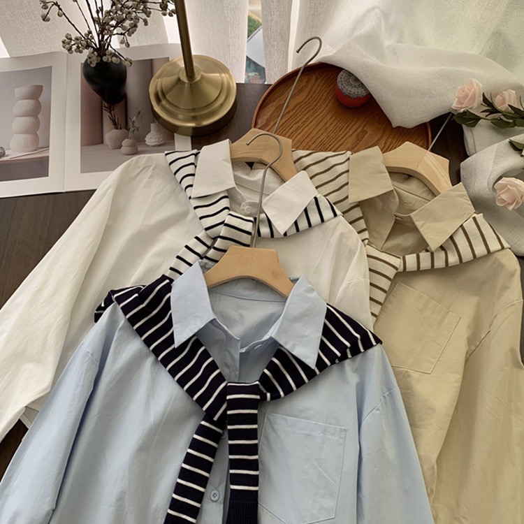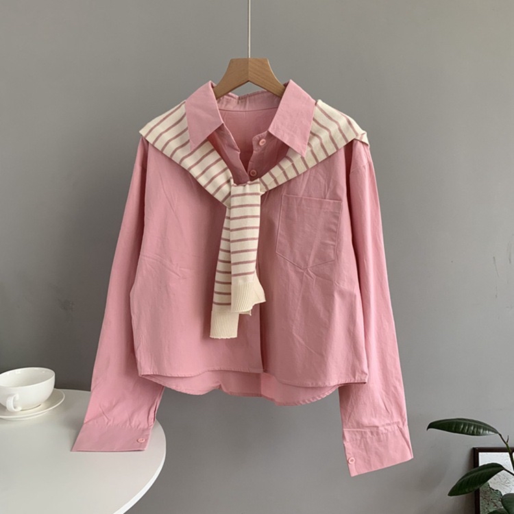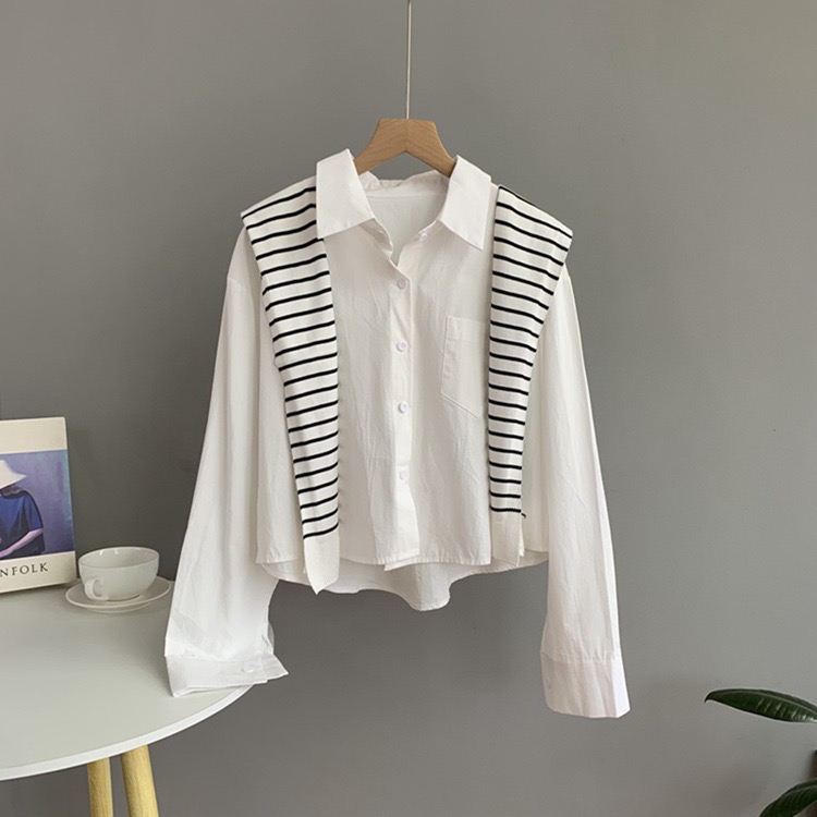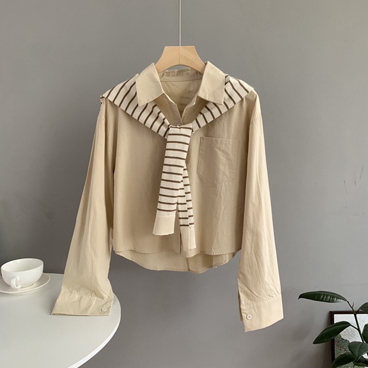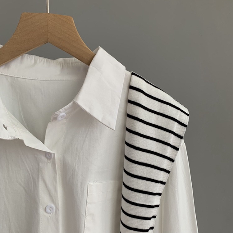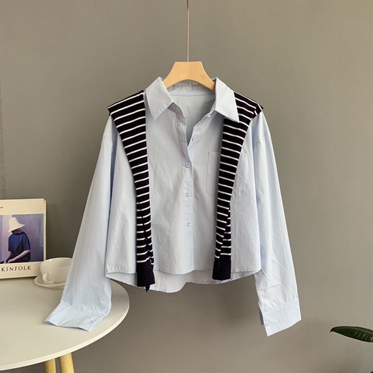 校园风线条针织披肩减龄衬衫
