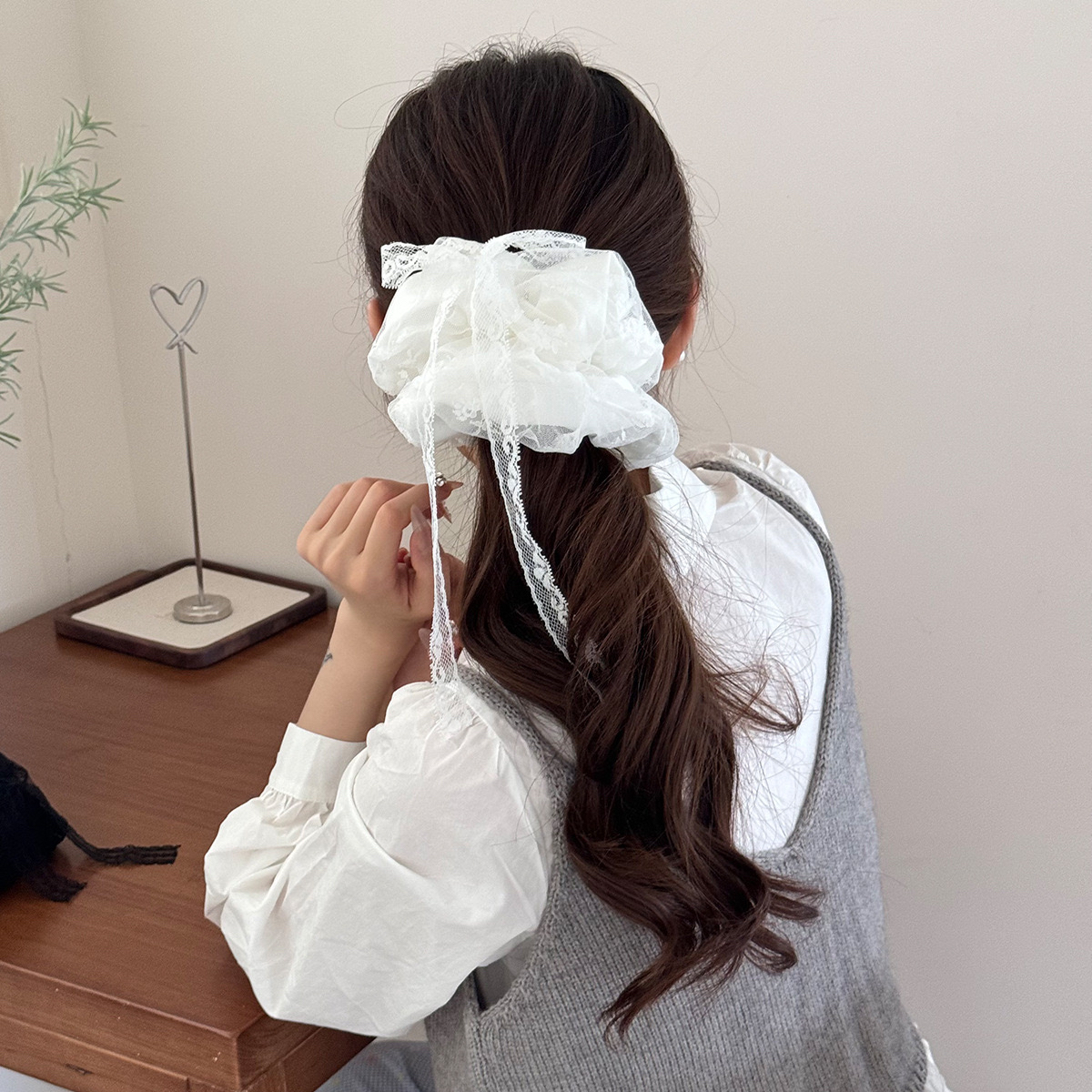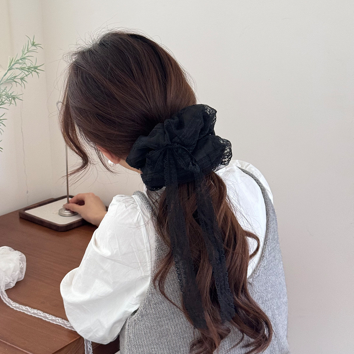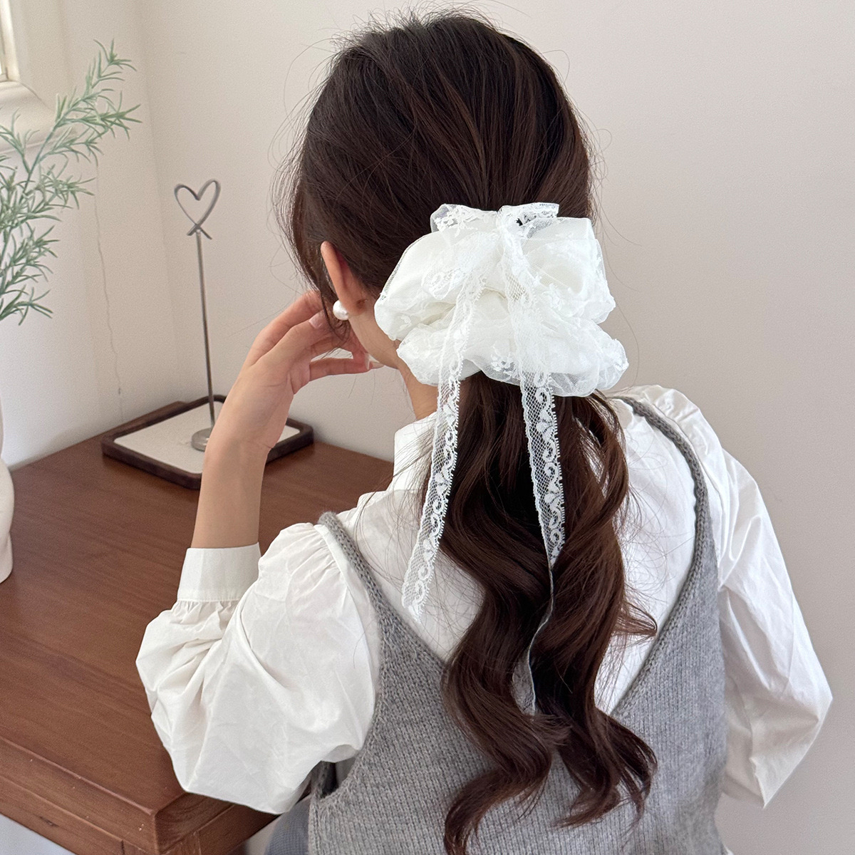 法式蕾丝蝴蝶结垂带发圈|French Lace Bow Hair Tie