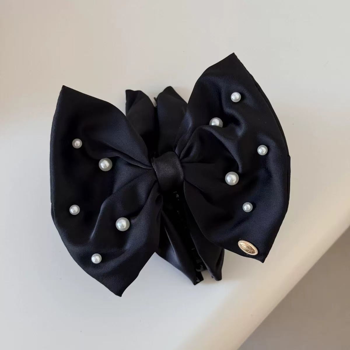 珍珠点缀缎面大蝴蝶结|Satin Pearl Bow Clip
