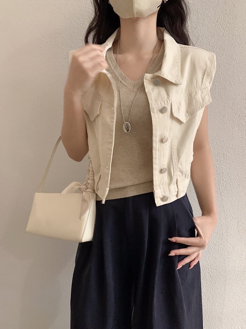 小飞袖牛仔马甲,肩垫设计更显肩型,甜美可爱又有小气场~三色可选,轻松搭配T恤或连衣裙。 款式特色: ✨小飞袖+肩垫设计,打造利落肩线,甜美又有型 📏 尺寸参考|Size Info 胸围 104cm|衣长 46cm (手工测量,误差 ±1-2cm 为正常范围) Cute denim vest with puffed mini sleeves and shoulder pads. Sweet, stylish, and easy to match with tees or dresses.