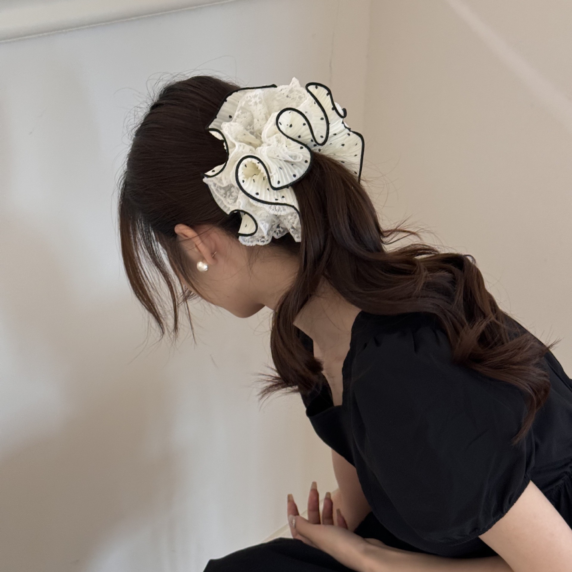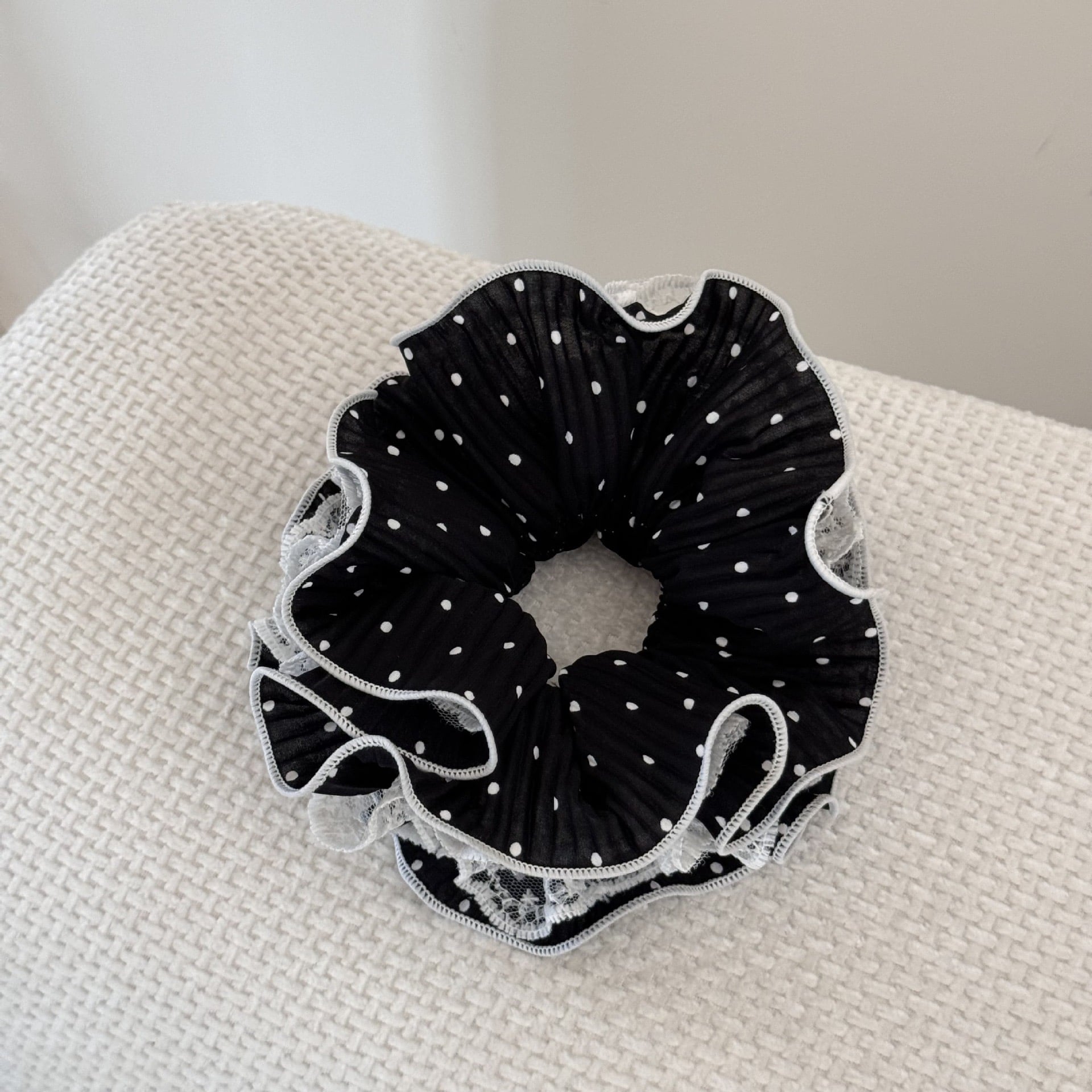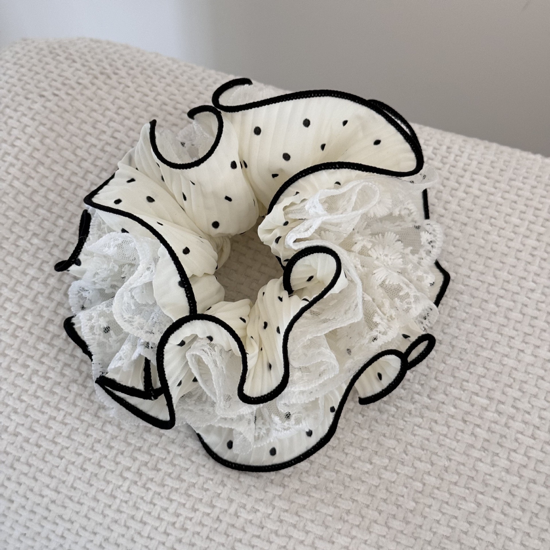 蕾丝刺绣小波点发圈|Lace Embroidery Polka Dot Scrunchie