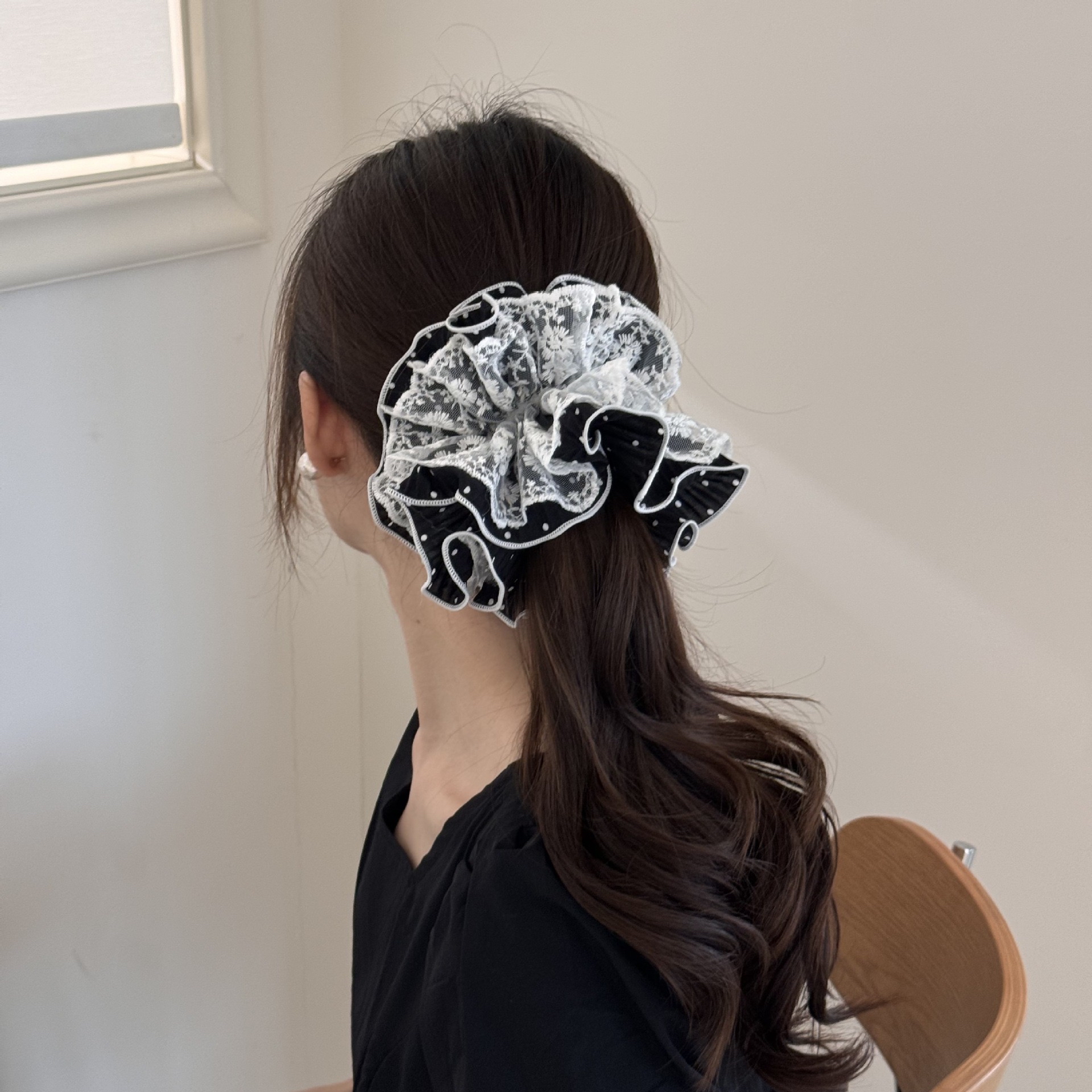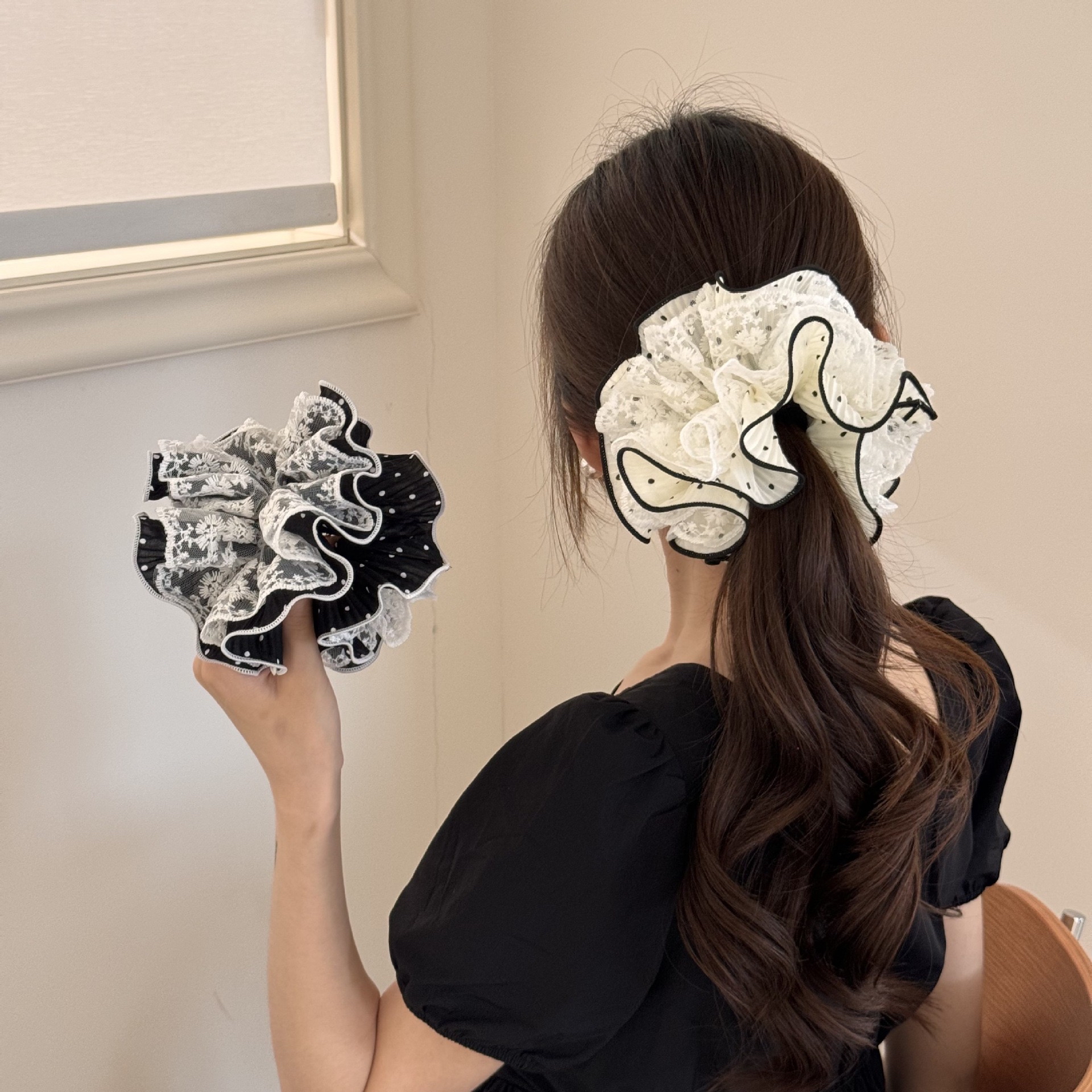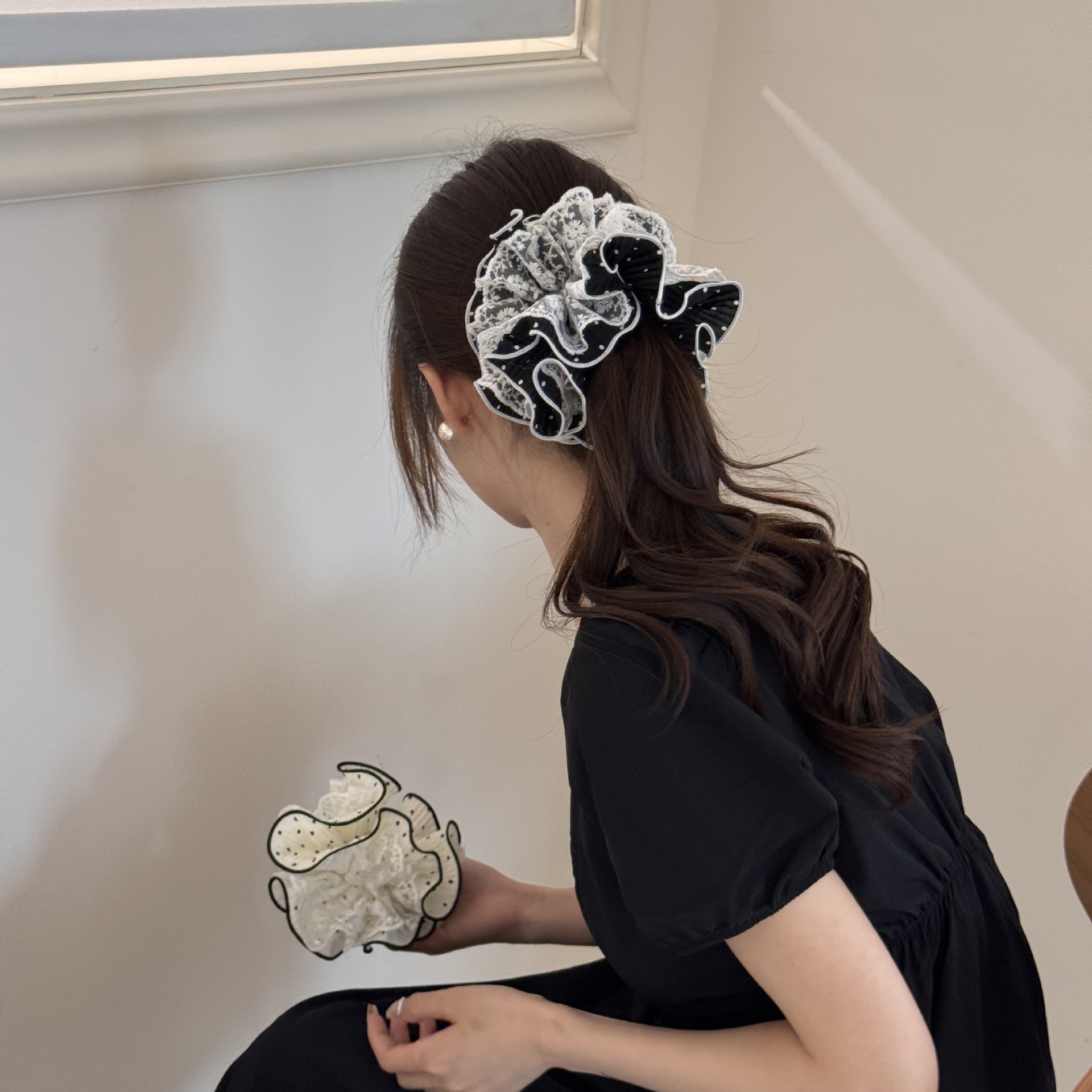 轻盈网纱+立体刺绣边,随意扎马尾都温柔好看。 蓬松廓形,显发量、显脸小,黑白配色百搭优雅。 日常、上班、约会都能轻松驾驭,让发型更有质感✨ Lightweight mesh with delicate lace details. Soft volume shape makes hair look fuller & face smaller. Classic black & white pairing – stylish and easy to match.
