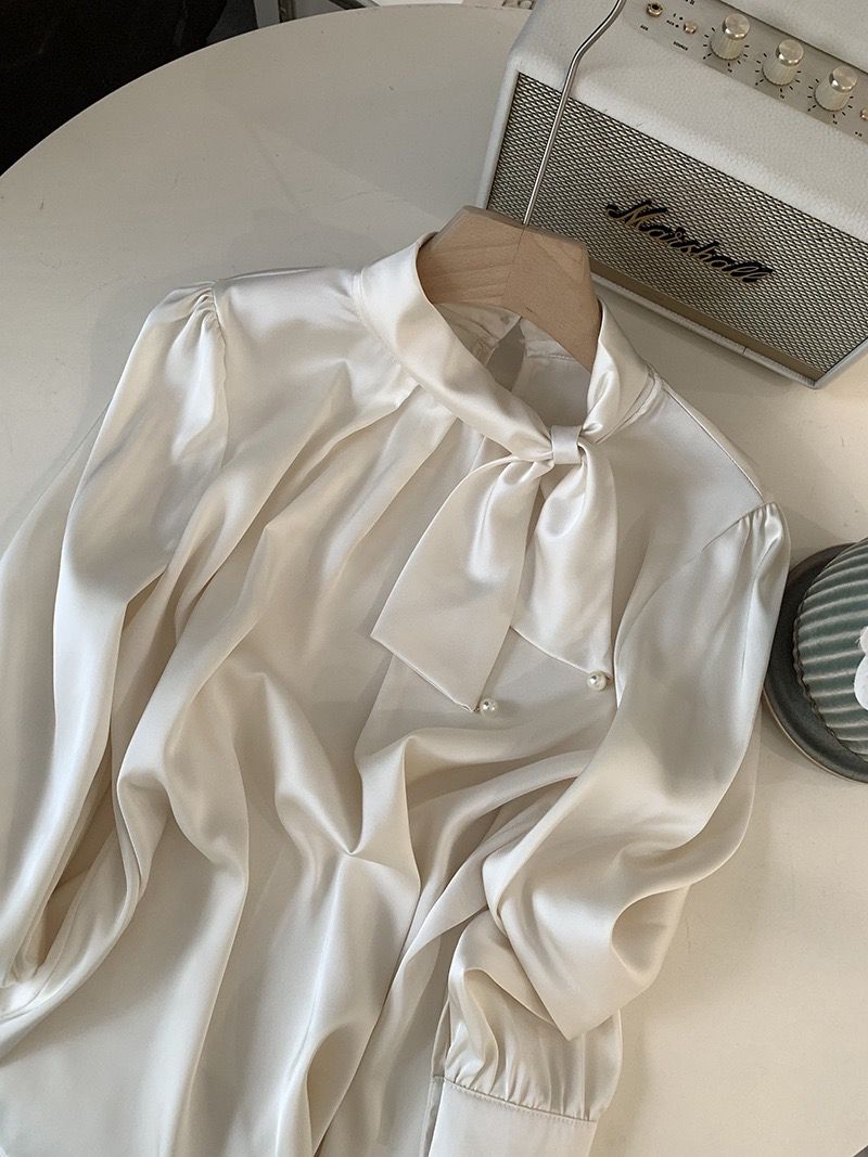 高级感满满~!侧边蝴蝶结丝绸上衣