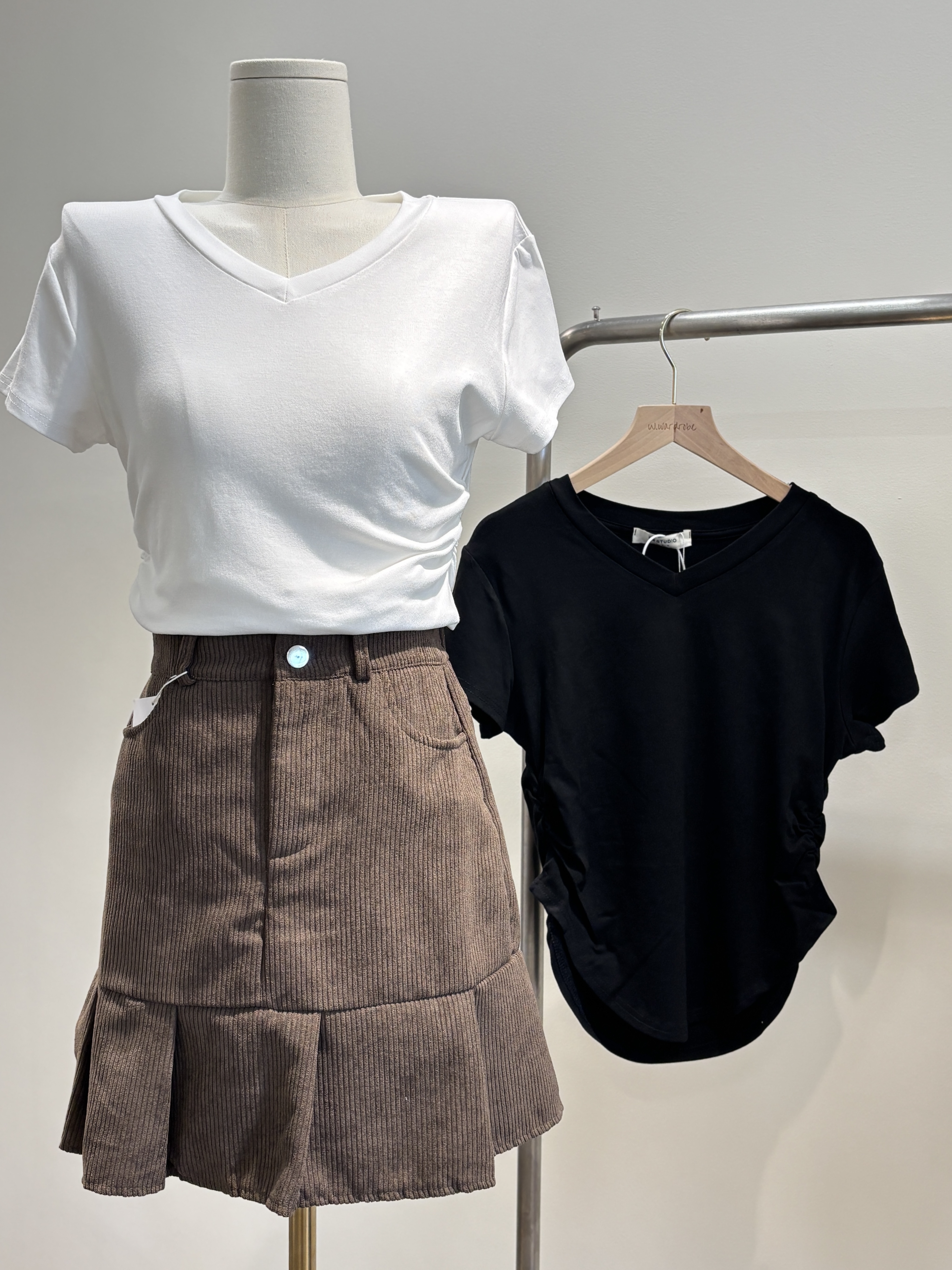 RS家高货 正肩V领收腰Tee